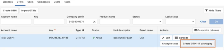 GS1 Rekisteri – Creating a GTIN code for a case or pallet