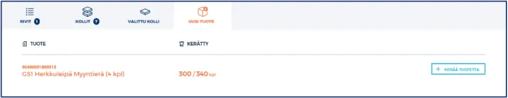 Keräyksen loppuosa tehdään nyt myyntierinä. Klikataan Kerää tuotetta.