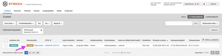 Julkaisun jälkeen tuotetieto lähetetään tuotetiedon vastaanottajalle, joka tarkastaa että tuotetieto täyttää nykyiset tuotetietovaatimukset. Tavarantoimittajalle lähetetään vahvistus joka näkyy käyttöliittymän tuotelistauksessa. Vahvistustila on tärkeä niille tavarantoimittajille, jotka välittävät tuotetietoa muille kohdemarkkinoille, esim. ruotsalaiselle ICA kaupparyhmälle.