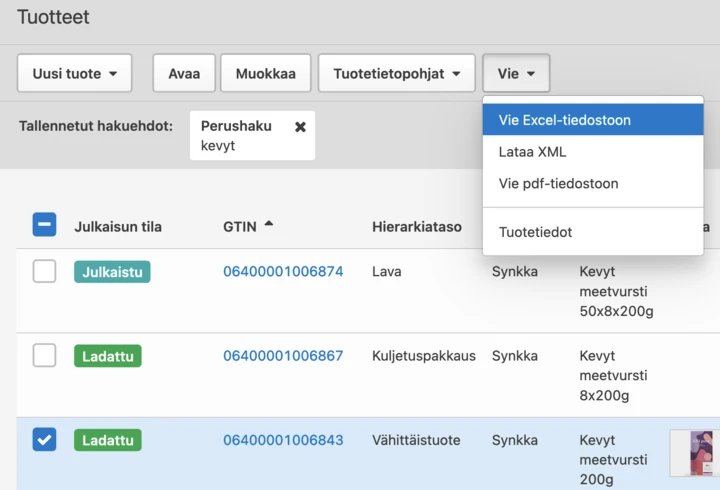 Voit luoda GS1 Synkkaan Excel-pohjia ja valita, mitkä tuotetiedot niihin sisältyvät.