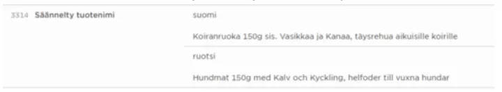 Säännelty tuotenimi / Regulated product name (Id 3314)