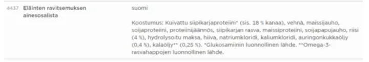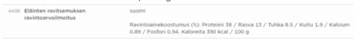 Kuvakaappaus Synkka Eläinten ravitsemuksen ravintoarvoilmoitus