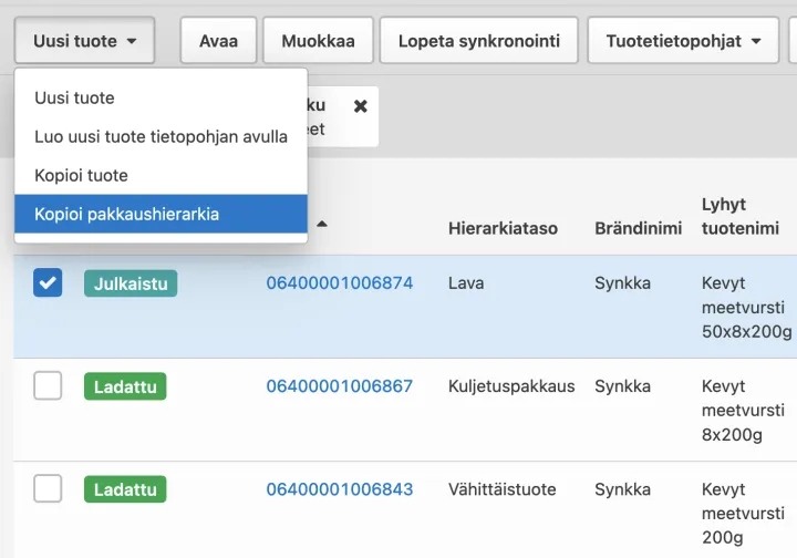 GS1 Synkka – Tuotteen ja pakkaushierarkian kopiointi