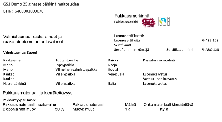 Tuotteen nimi: GS1 Suklaa 25 g demo