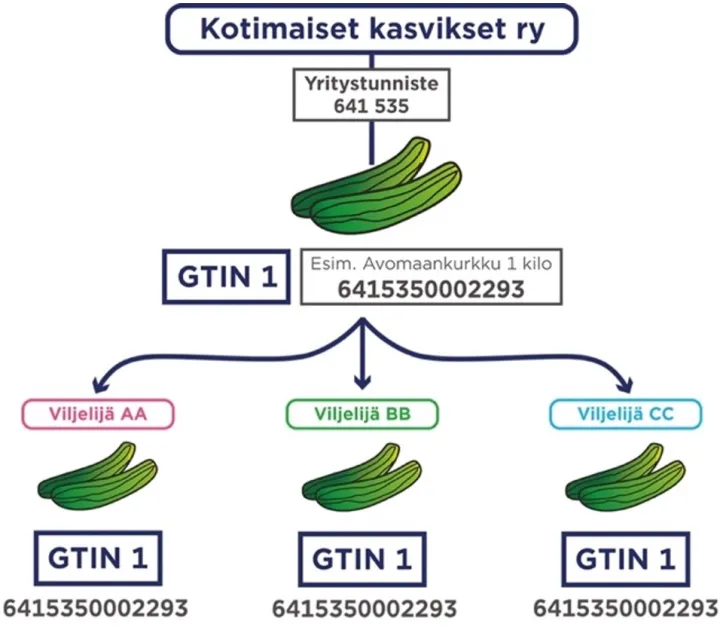 Tuotteen GTIN-koodin avulla tulee pystyä varmentamaan, minkä yrityksen tuotteesta on kysymys. Tämän vuoksi Kotimaisten Kasvisten koodeihin liittyvää toimintamallia muutetaan ja GS1-yritystunnisteen tulee jatkossa olla aina yrityskohtainen. Vain yksilöimällä tuotteet oikein jäljitettävyysvaatimus voidaan täyttää.