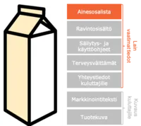 Tärkeitä elintarvikkeen sisältöä kuvaavia tietoja ovat: