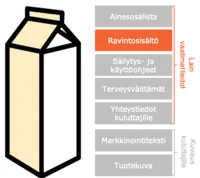 - Ravintosisältö: esim. energian, proteiinien ja hiilihydraattien määrä